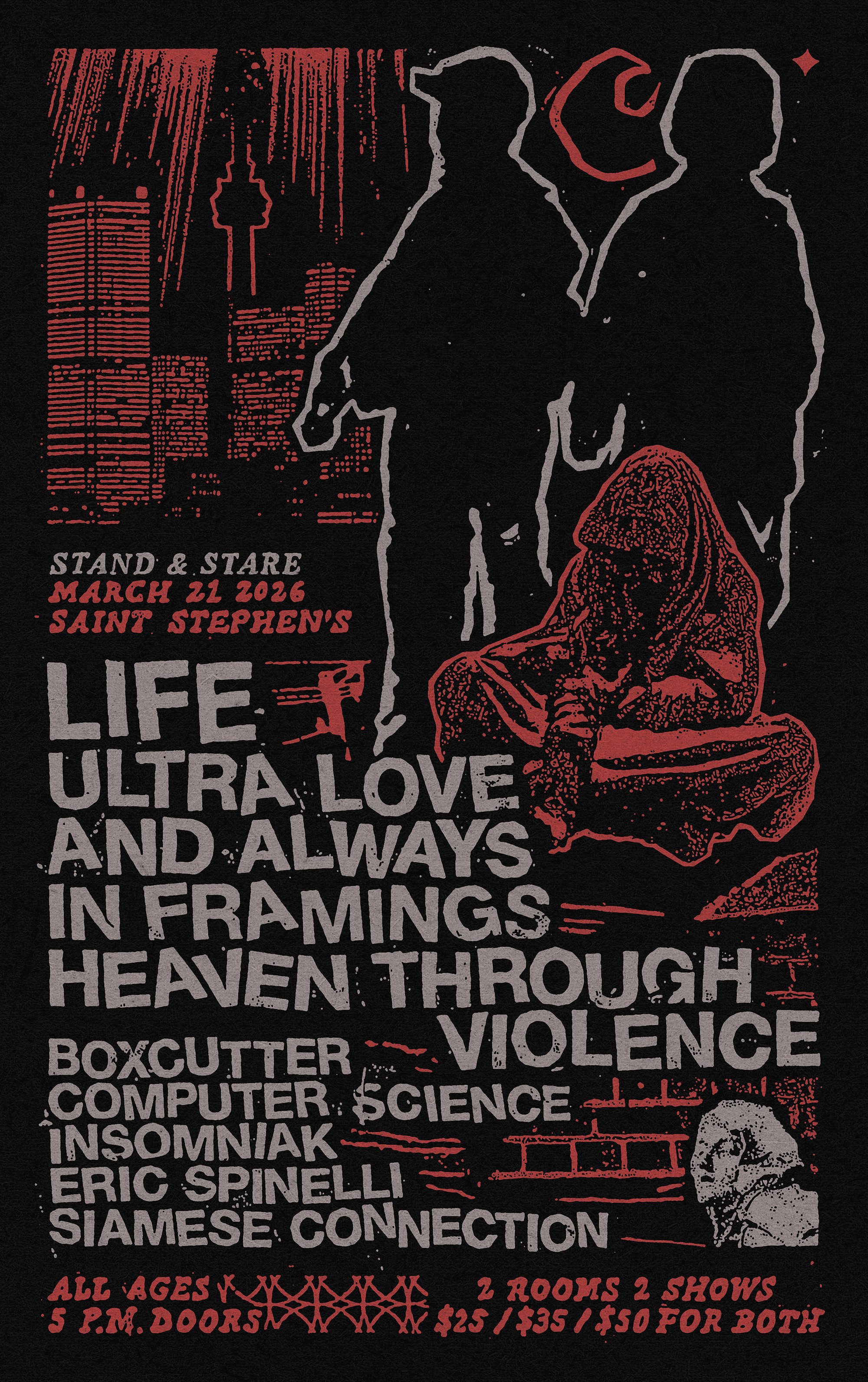 Stand & Stare: 2 rooms, 2 shows, 10 bands. Celebrate the coming of spring with a screamo mini-fest at Saint Stephen's!